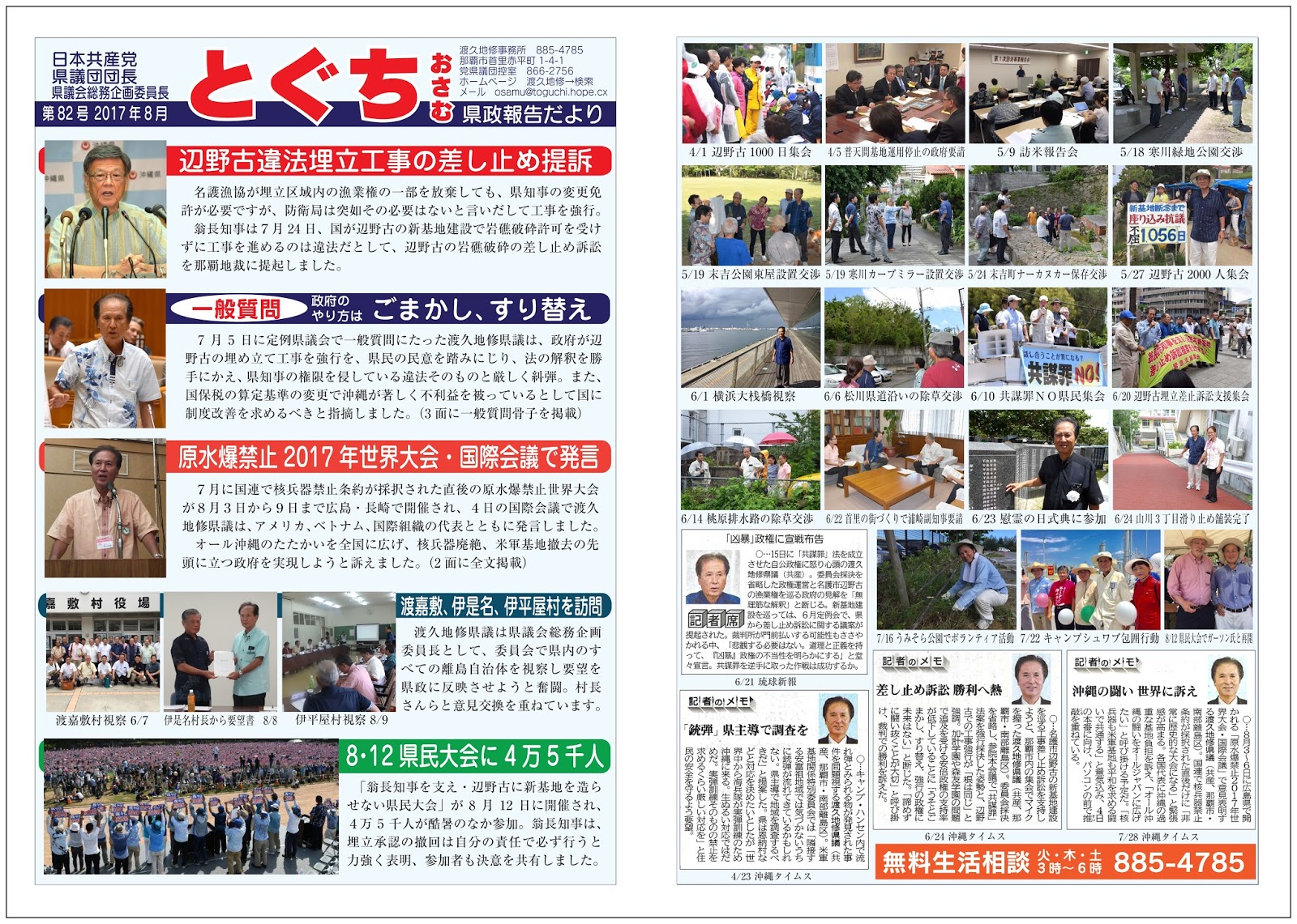 第82号 1面・4面 2~3面とぐち修県政報告だより、2017年2月議会報告