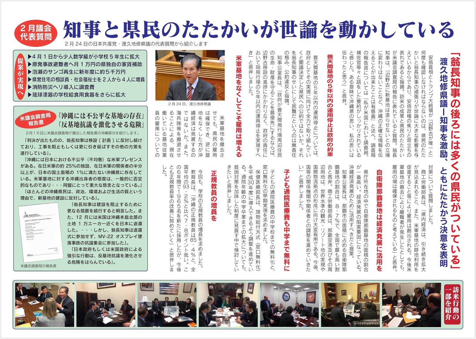 「新しい戦前の始まり」県議団だより、3月2日の一般質問の全文 1面 2面