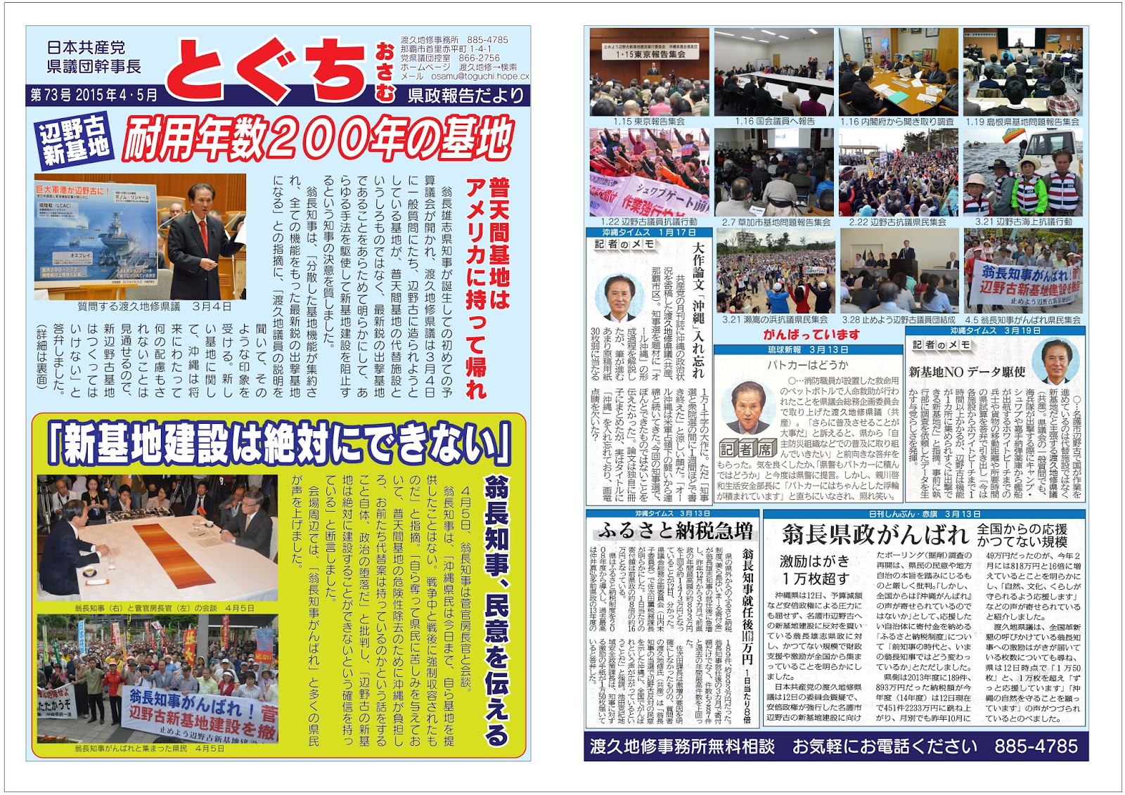 第74号 1面・4面 2~3面 とぐち修県政報告だより、2015年2月議会報告