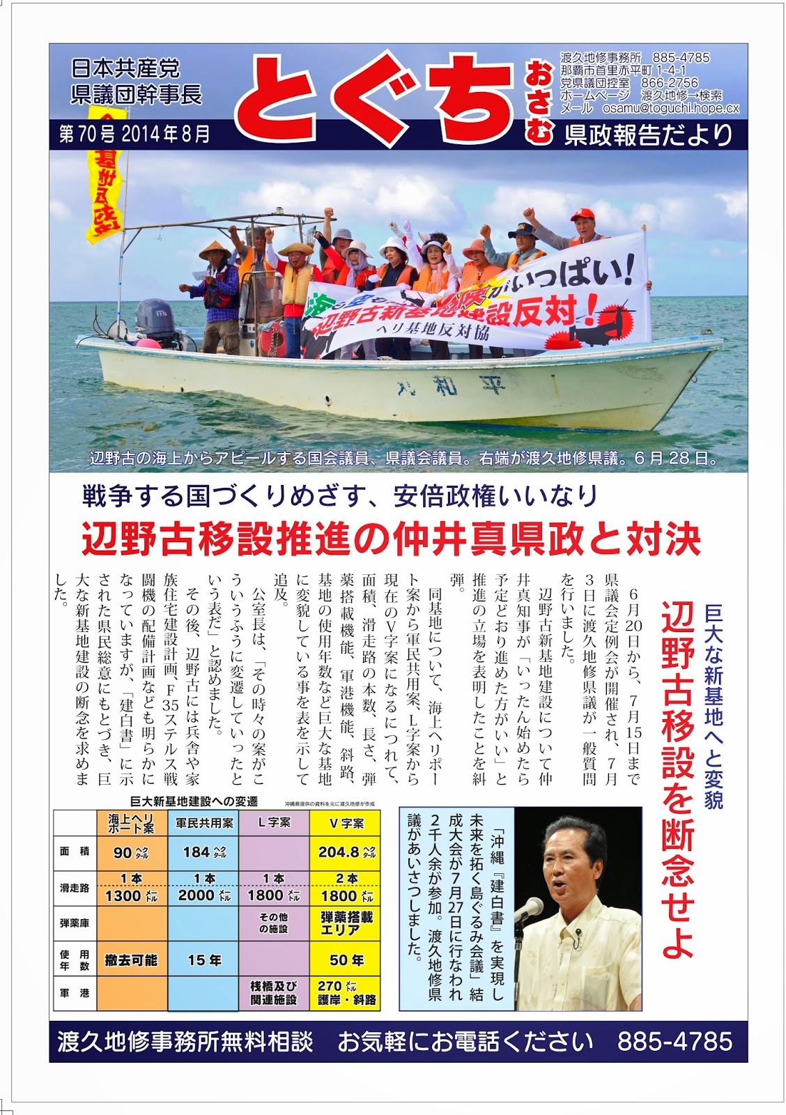 第72号 1面・4面 2~3面 とぐち修県政報告だより、2014年9月議会報告