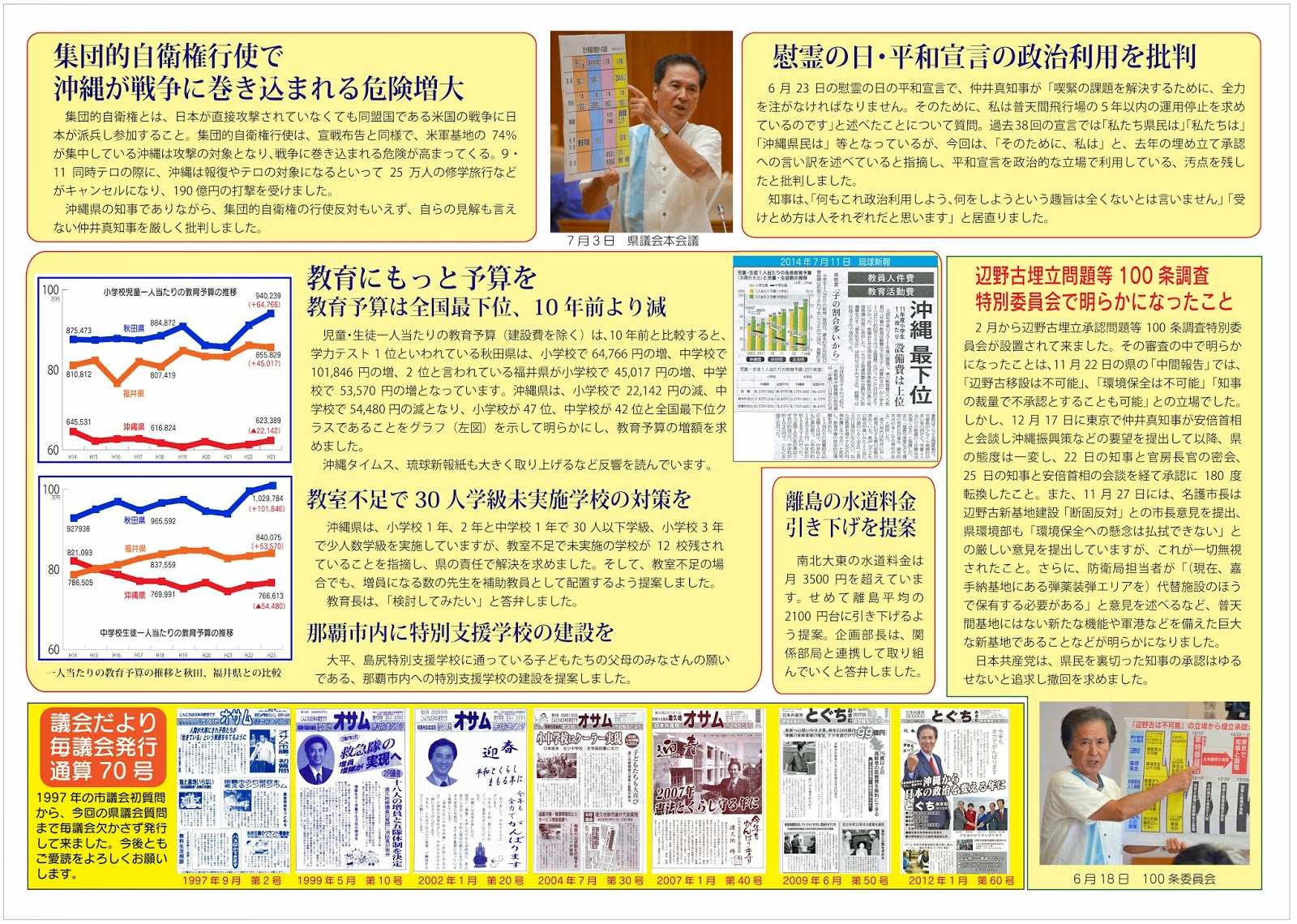 第71号 1面 2~3面 4面 とぐち修県政報告だより、2014年6月議会報告